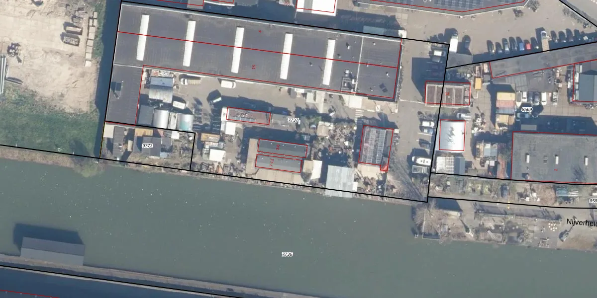 Het perceel waarop Nijverheidskade 3 staat heeft een oppervlakte van 5515 m². Dit is een zeer groot perceel. De perceeloppervlakte wordt geregistreerd door het Kadaster. Gedetailleerde informatie over de maten van dit perceel kunt u vinden in het rapport Kadastrale kaart met maatvoering van Nijverheidskade 3.