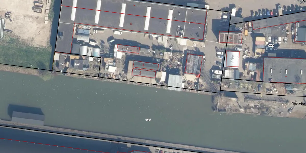 Het perceel waarop Nijverheidskade 7 staat heeft een oppervlakte van 5515 m². Dit is een zeer groot perceel. De perceeloppervlakte wordt geregistreerd door het Kadaster. Gedetailleerde informatie over de maten van dit perceel kunt u vinden in het rapport Kadastrale kaart met maatvoering van Nijverheidskade 7.