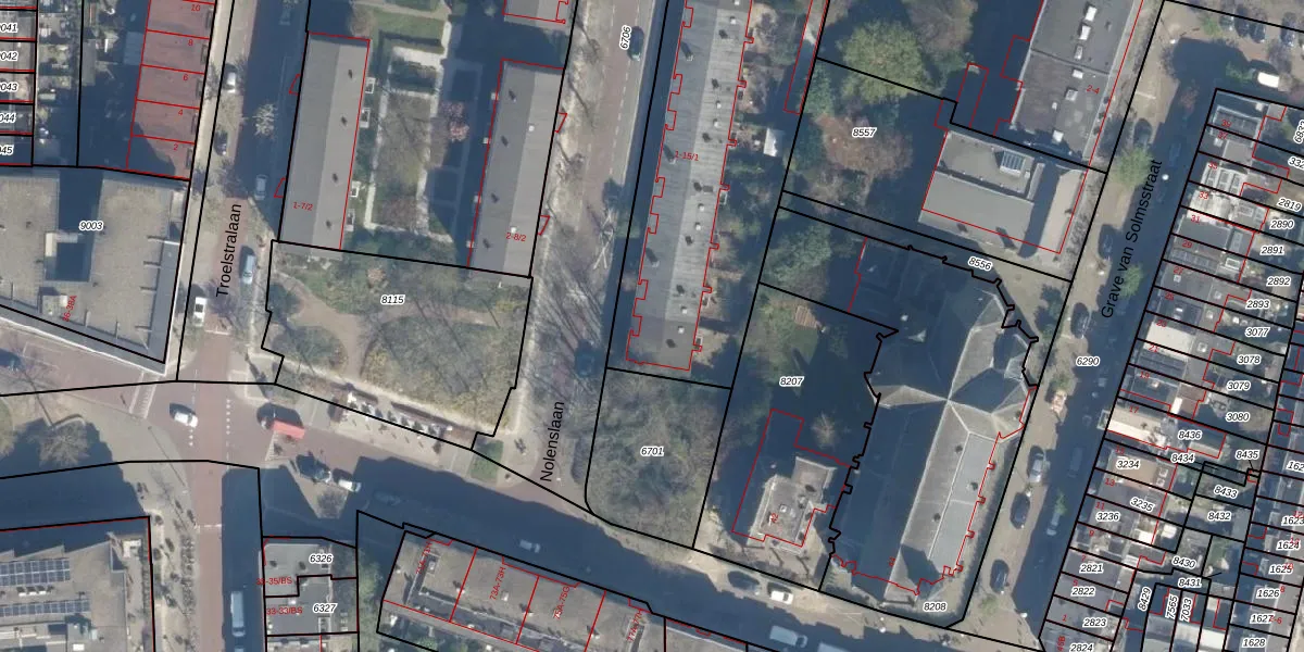 Het perceel waarop Nolenslaan 1-1 staat heeft een oppervlakte van 3420 m². Dit is een zeer groot perceel. De perceeloppervlakte wordt geregistreerd door het Kadaster. Gedetailleerde informatie over de maten van dit perceel kunt u vinden in het rapport Kadastrale kaart met maatvoering van Nolenslaan 1-1.