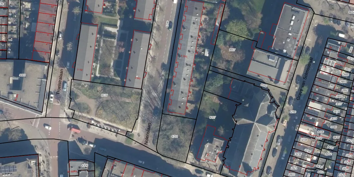 Het perceel waarop Nolenslaan 3-1 staat heeft een oppervlakte van 3420 m². Dit is een zeer groot perceel. De perceeloppervlakte wordt geregistreerd door het Kadaster. Gedetailleerde informatie over de maten van dit perceel kunt u vinden in het rapport Kadastrale kaart met maatvoering van Nolenslaan 3-1.