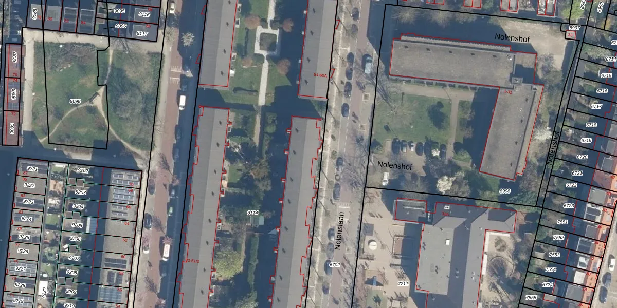 Het perceel waarop Nolenslaan 50-2 staat heeft een oppervlakte van 7515 m². Dit is een zeer groot perceel. De perceeloppervlakte wordt geregistreerd door het Kadaster. Gedetailleerde informatie over de maten van dit perceel kunt u vinden in het rapport Kadastrale kaart met maatvoering van Nolenslaan 50-2.