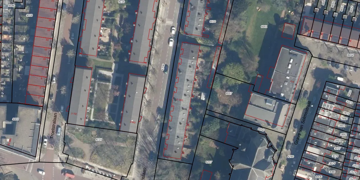 Het perceel waarop Nolenslaan 9-1 staat heeft een oppervlakte van 3420 m². Dit is een zeer groot perceel. De perceeloppervlakte wordt geregistreerd door het Kadaster. Gedetailleerde informatie over de maten van dit perceel kunt u vinden in het rapport Kadastrale kaart met maatvoering van Nolenslaan 9-1.