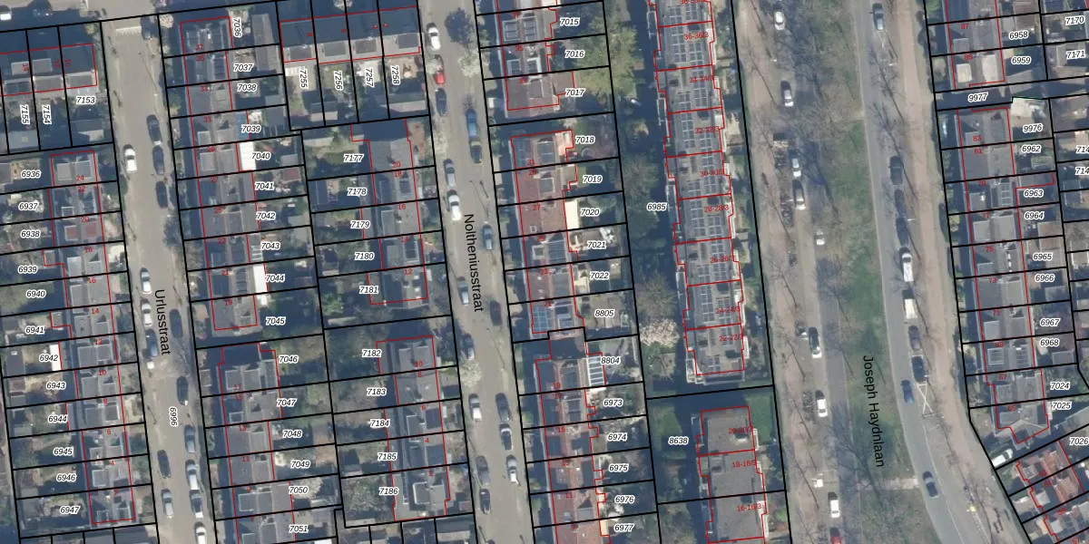 Gebruik de zoekbalk of klik op een perceel voor informatie over de adressen binnen dit perceel.