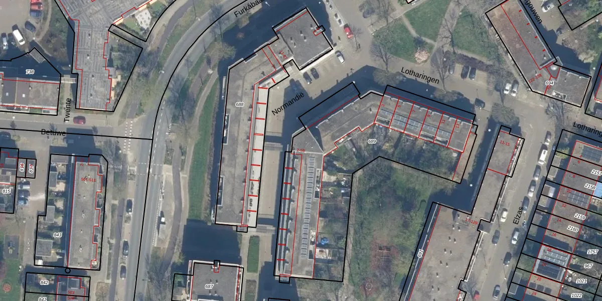 Het perceel waarop Normandië 14 staat heeft een oppervlakte van 2237 m². Dit is een zeer groot perceel. De perceeloppervlakte wordt geregistreerd door het Kadaster. Gedetailleerde informatie over de maten van dit perceel kunt u vinden in het rapport Kadastrale kaart met maatvoering van Normandië 14.