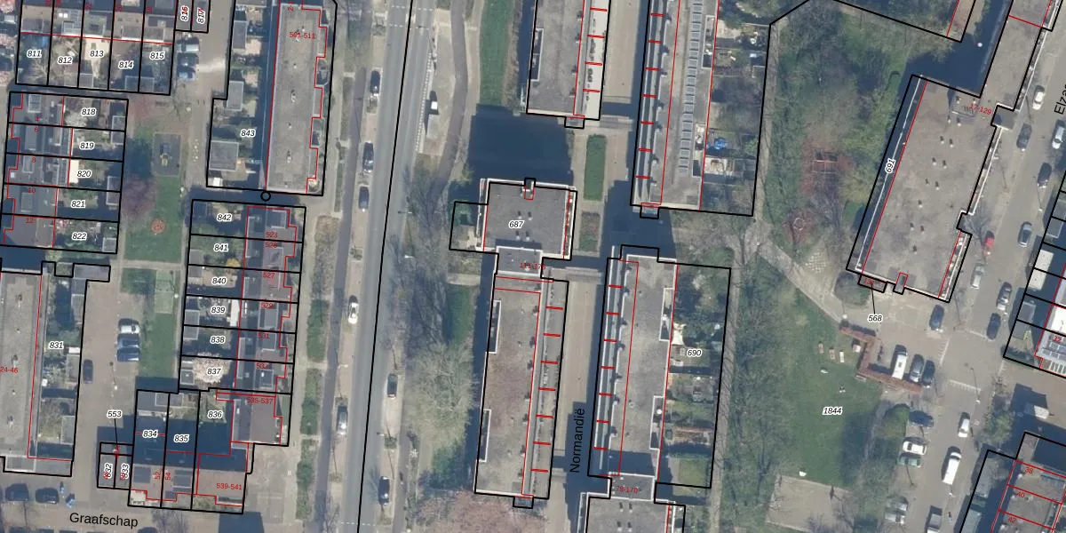 Het perceel waarop Normandië 157 staat heeft een oppervlakte van 884 m². Dit is een groot perceel. De perceeloppervlakte wordt geregistreerd door het Kadaster. Gedetailleerde informatie over de maten van dit perceel kunt u vinden in het rapport Kadastrale kaart met maatvoering van Normandië 157.