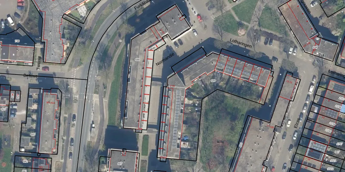 Het perceel waarop Normandië 38 staat heeft een oppervlakte van 2237 m². Dit is een zeer groot perceel. De perceeloppervlakte wordt geregistreerd door het Kadaster. Gedetailleerde informatie over de maten van dit perceel kunt u vinden in het rapport Kadastrale kaart met maatvoering van Normandië 38.