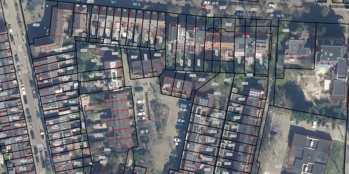 Gebruik de zoekbalk of klik op een perceel voor informatie over de adressen binnen dit perceel.