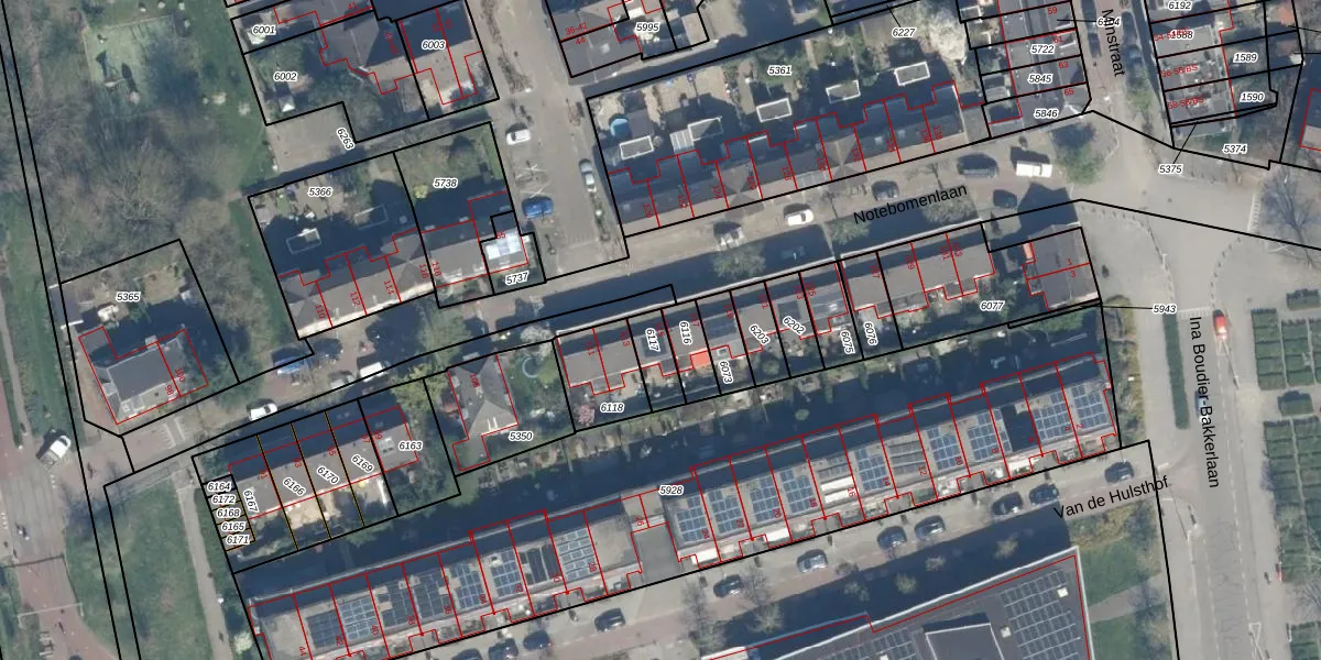 Gebruik de zoekbalk of klik op een perceel voor informatie over de adressen binnen dit perceel.