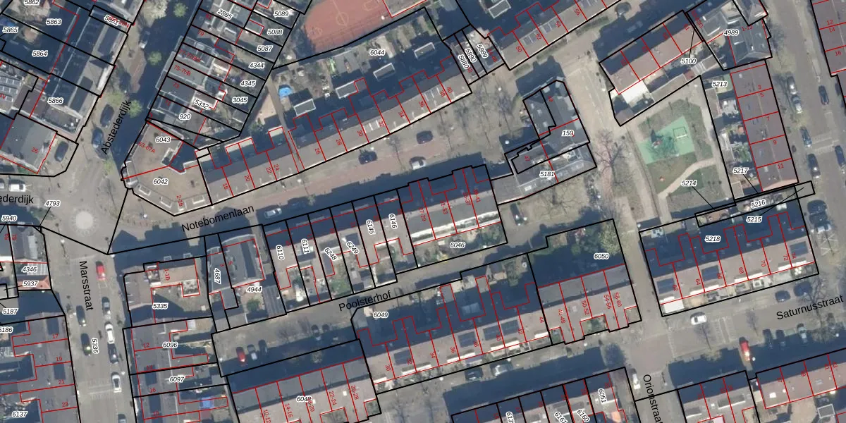 Notebomenlaan 29 is gelegen op kadastraal perceel ASD40D6046. Deze kadastrale aanduiding is uniek en wordt gebruikt door het Kadaster om eigendomsrechten en andere zakelijke rechten vast te leggen. Het perceel maakt onderdeel uit van de kadastrale gemeente Abstede.