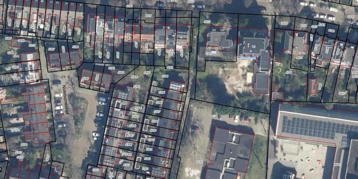 Notebomenlaan 372 is gelegen op kadastraal perceel ASD40D5294. Deze kadastrale aanduiding is uniek en wordt gebruikt door het Kadaster om eigendomsrechten en andere zakelijke rechten vast te leggen. Het perceel maakt onderdeel uit van de kadastrale gemeente Abstede.