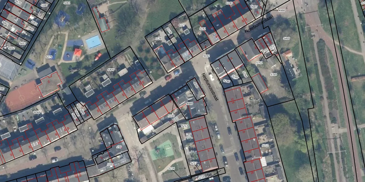 Notebomenlaan 63 is gelegen op kadastraal perceel ASD40D4989. Deze kadastrale aanduiding is uniek en wordt gebruikt door het Kadaster om eigendomsrechten en andere zakelijke rechten vast te leggen. Het perceel maakt onderdeel uit van de kadastrale gemeente Abstede.