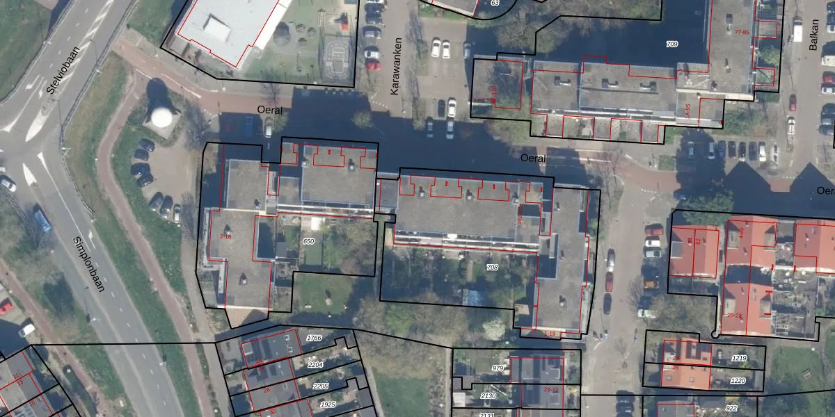Het perceel waarop het adres ligt is UTT00-U-708. De afkorting 'UTT00' staat voor kadastrale gemeente Utrecht. Het perceel is met 1752 m² relatief groot. Het gemiddelde ligt in de kadastrale gemeente Utrecht op 1438,48 m². De grootste perceeloppervlakte in de kadastrale gemeente is 90,1 ha. De kleinste oppervlakte bedraagt 0 m². Er zijn 43 adressen aanwezig op het perceel. De huidige grenzen van het perceel zijn digitaal in de Basisregistratie Kadaster (BRK) geregistreerd op 20-08-2001.