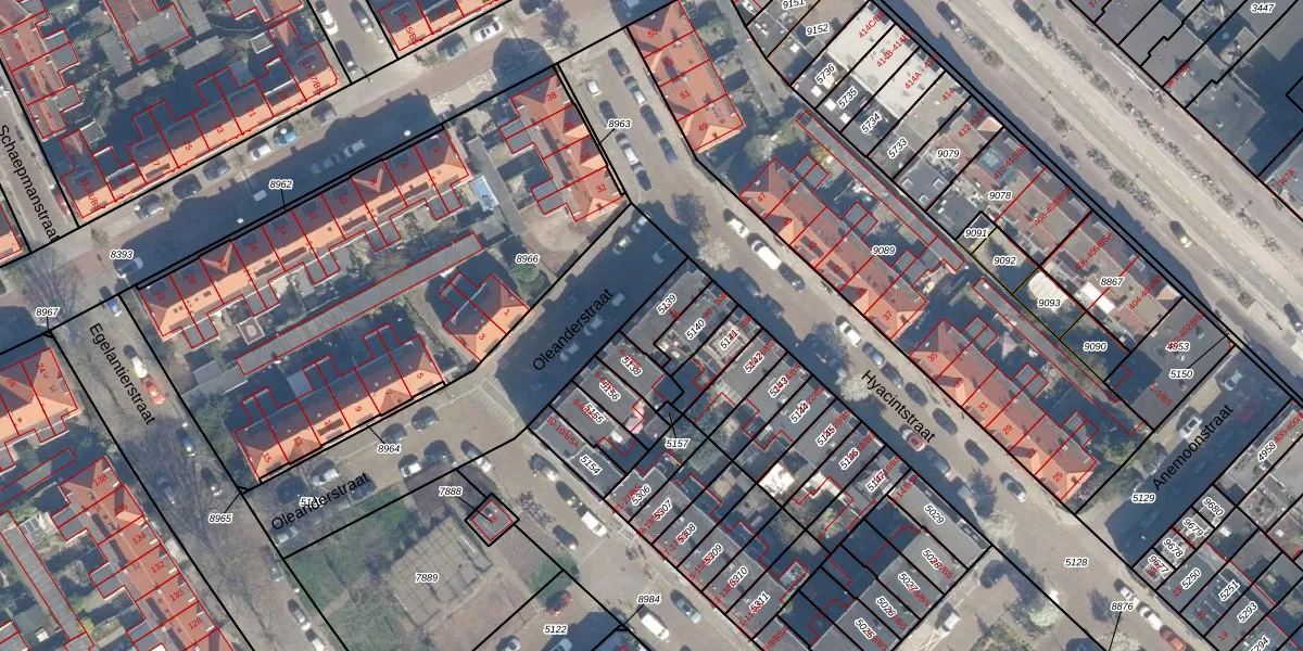 Het perceel waarop Oleanderstraat 2-B staat heeft een oppervlakte van 90 m². Dit is een klein perceel. De perceeloppervlakte wordt geregistreerd door het Kadaster. Gedetailleerde informatie over de maten van dit perceel kunt u vinden in het rapport Kadastrale kaart met maatvoering van Oleanderstraat 2-B.