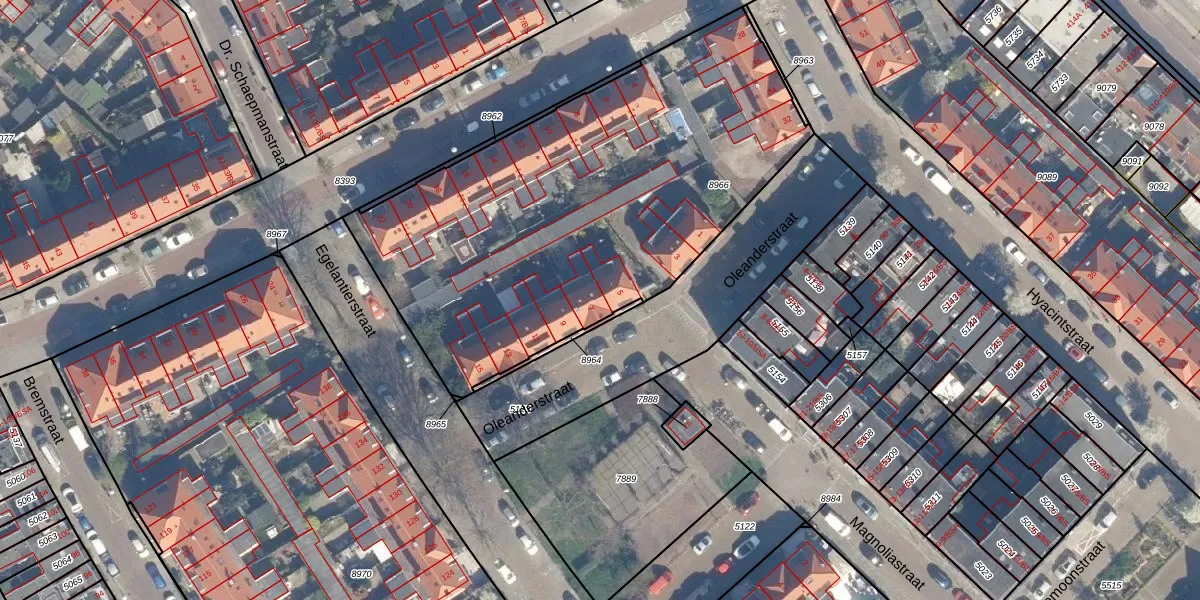 Het perceel waarop Oleanderstraat 7 staat heeft een oppervlakte van 2419 m². Dit is een zeer groot perceel. De perceeloppervlakte wordt geregistreerd door het Kadaster. Gedetailleerde informatie over de maten van dit perceel kunt u vinden in het rapport Kadastrale kaart met maatvoering van Oleanderstraat 7.