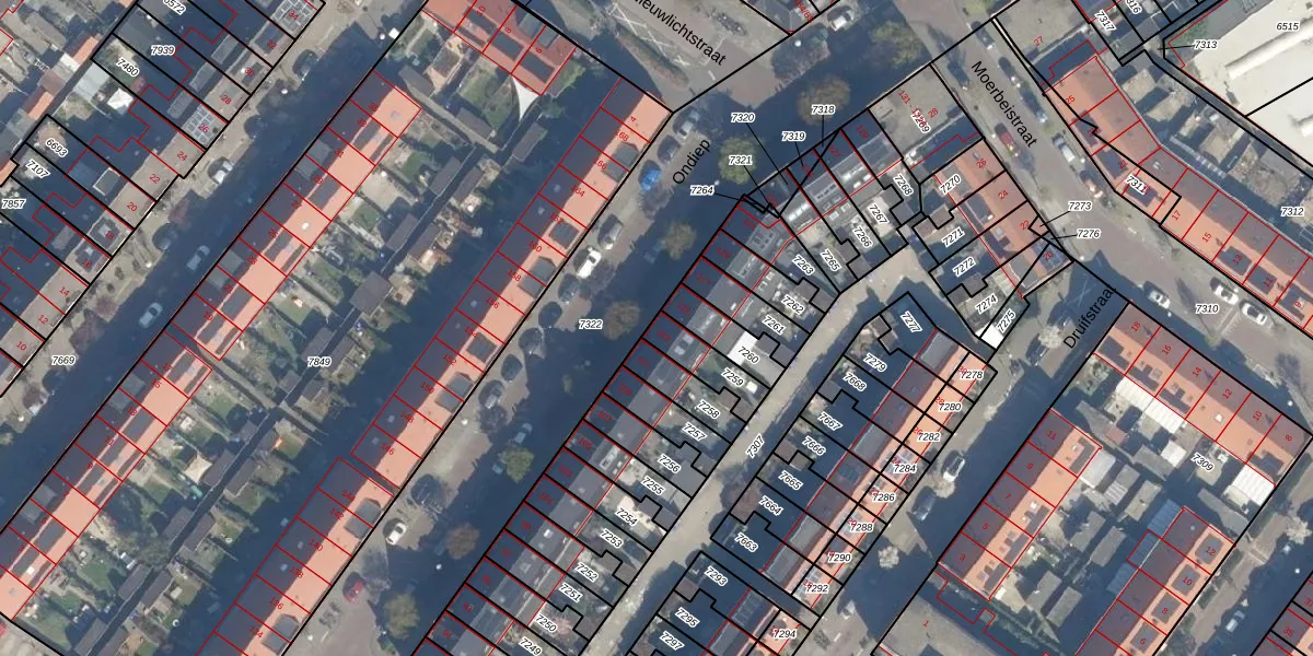 Gebruik de zoekbalk of klik op een perceel voor informatie over de adressen binnen dit perceel.
