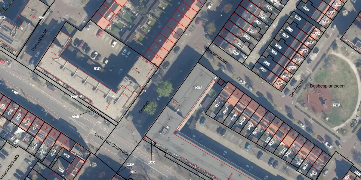 Het perceel waarop Ondiep 85 staat heeft een oppervlakte van 3209 m². Dit is een zeer groot perceel. De perceeloppervlakte wordt geregistreerd door het Kadaster. Gedetailleerde informatie over de maten van dit perceel kunt u vinden in het rapport Kadastrale kaart met maatvoering van Ondiep 85.