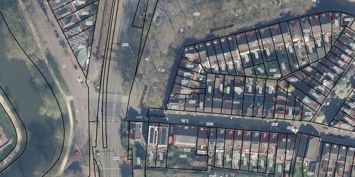 Oosterstraat 1-BS is gelegen op kadastraal perceel ASD40C8055. Deze kadastrale aanduiding is uniek en wordt gebruikt door het Kadaster om eigendomsrechten en andere zakelijke rechten vast te leggen. Het perceel maakt onderdeel uit van de kadastrale gemeente Abstede.