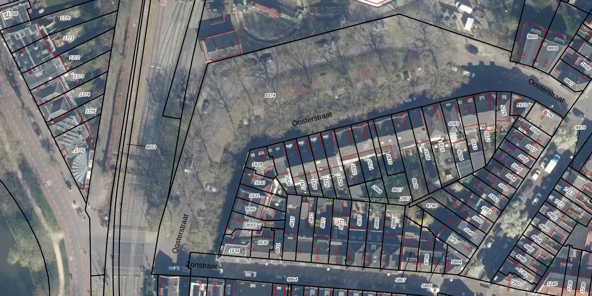 Het perceel waarop Oosterstraat 13-A staat heeft een oppervlakte van 85 m². Dit is een klein perceel. De perceeloppervlakte wordt geregistreerd door het Kadaster. Gedetailleerde informatie over de maten van dit perceel kunt u vinden in het rapport Kadastrale kaart met maatvoering van Oosterstraat 13-A.