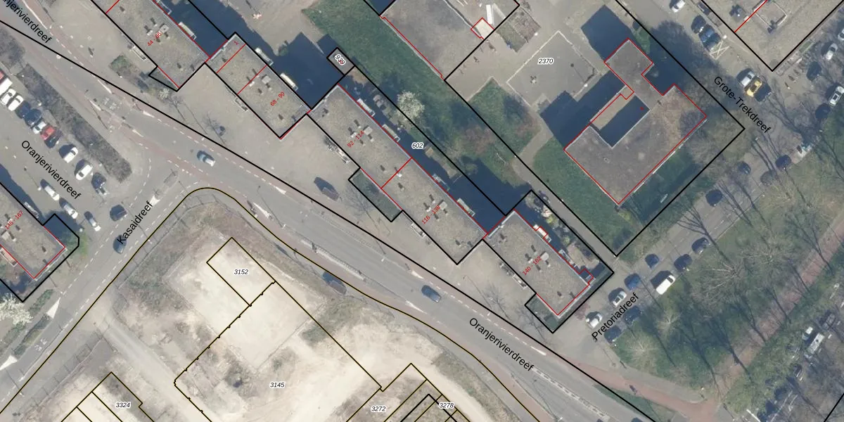 Het perceel waarop Oranjerivierdreef 116 staat heeft een oppervlakte van 2540 m². Dit is een zeer groot perceel. De perceeloppervlakte wordt geregistreerd door het Kadaster. Gedetailleerde informatie over de maten van dit perceel kunt u vinden in het rapport Kadastrale kaart met maatvoering van Oranjerivierdreef 116.