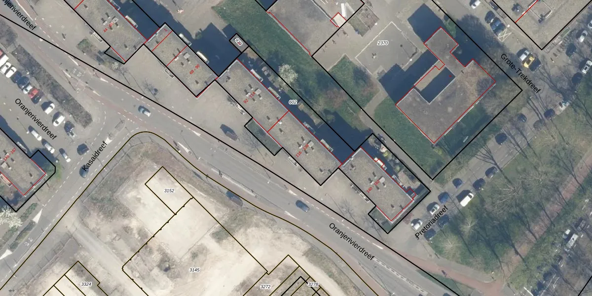Het perceel waarop Oranjerivierdreef 130 staat heeft een oppervlakte van 2540 m². Dit is een zeer groot perceel. De perceeloppervlakte wordt geregistreerd door het Kadaster. Gedetailleerde informatie over de maten van dit perceel kunt u vinden in het rapport Kadastrale kaart met maatvoering van Oranjerivierdreef 130.