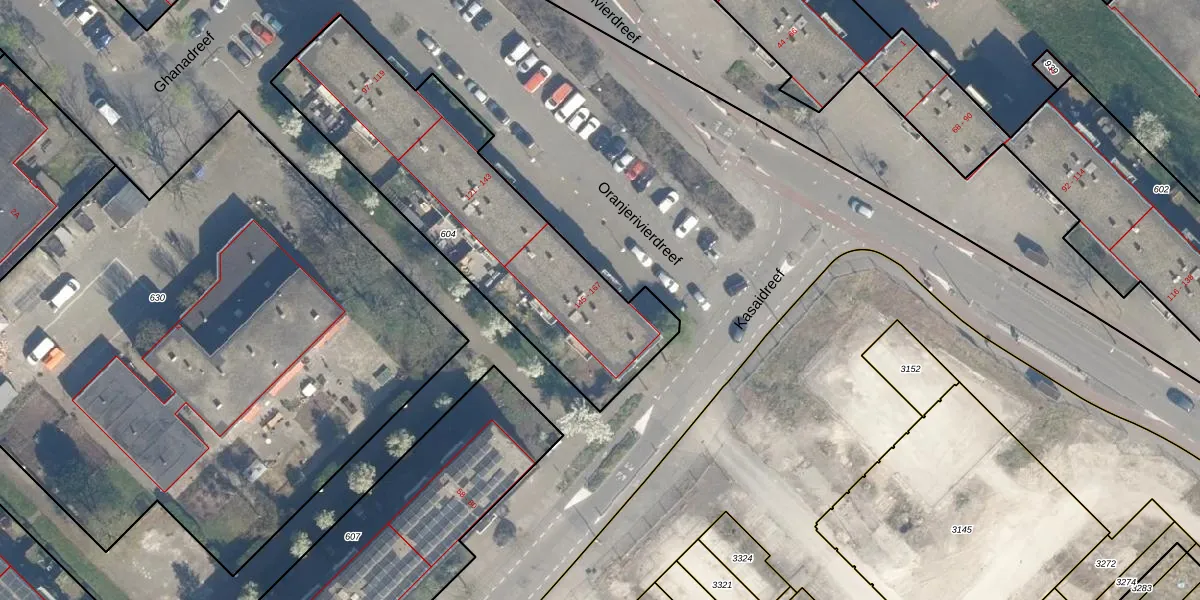 Oranjerivierdreef 155 is gelegen op kadastraal perceel UTT00F604. Deze kadastrale aanduiding is uniek en wordt gebruikt door het Kadaster om eigendomsrechten en andere zakelijke rechten vast te leggen. Het perceel maakt onderdeel uit van de kadastrale gemeente Utrecht.
