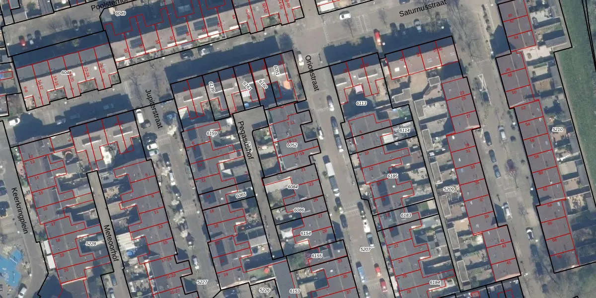 Het perceel waarop Orionstraat 15 staat heeft een oppervlakte van 362 m². Dit is een groot perceel. De perceeloppervlakte wordt geregistreerd door het Kadaster. Gedetailleerde informatie over de maten van dit perceel kunt u vinden in het rapport Kadastrale kaart met maatvoering van Orionstraat 15.