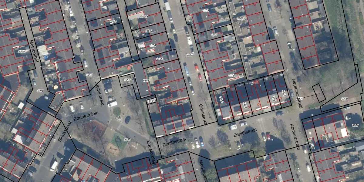 Het perceel waarop Orionstraat 39 staat heeft een oppervlakte van 1470 m². Dit is een zeer groot perceel. De perceeloppervlakte wordt geregistreerd door het Kadaster. Gedetailleerde informatie over de maten van dit perceel kunt u vinden in het rapport Kadastrale kaart met maatvoering van Orionstraat 39.