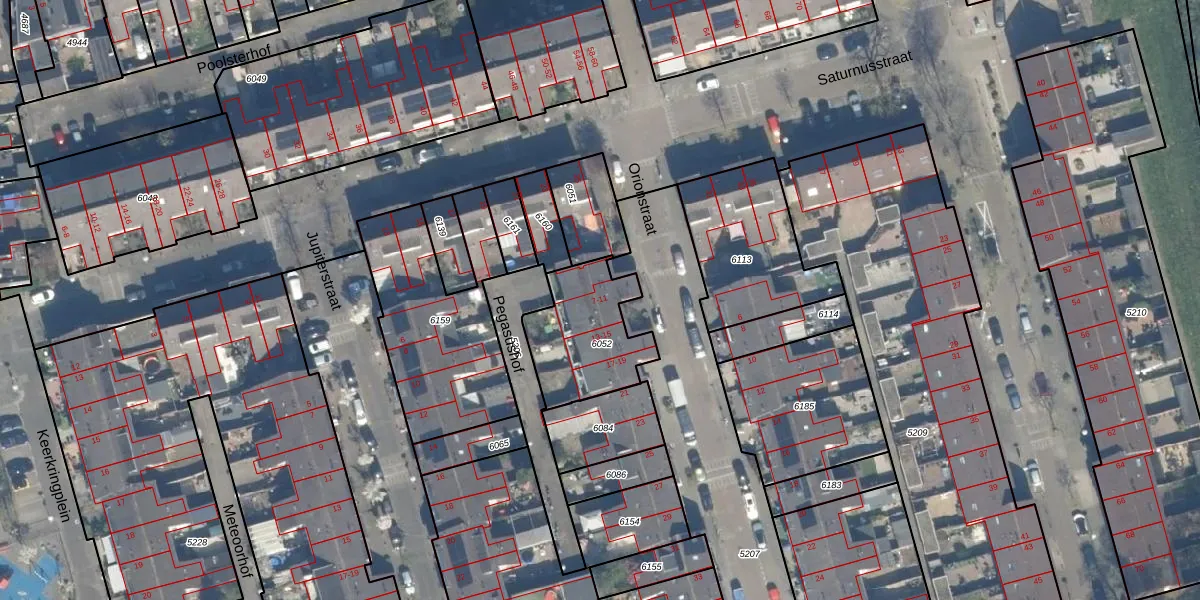 Het perceel waarop Orionstraat 9 staat heeft een oppervlakte van 362 m². Dit is een groot perceel. De perceeloppervlakte wordt geregistreerd door het Kadaster. Gedetailleerde informatie over de maten van dit perceel kunt u vinden in het rapport Kadastrale kaart met maatvoering van Orionstraat 9.