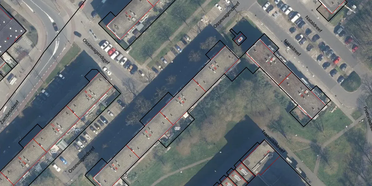 Ossewagendreef 36 is gelegen op kadastraal perceel UTT00F637. Deze kadastrale aanduiding is uniek en wordt gebruikt door het Kadaster om eigendomsrechten en andere zakelijke rechten vast te leggen. Het perceel maakt onderdeel uit van de kadastrale gemeente Utrecht.