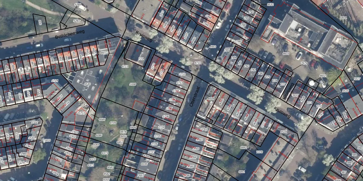 Het perceel waarop Otterstraat 70 staat heeft een oppervlakte van 80 m². Dit is een klein perceel. De perceeloppervlakte wordt geregistreerd door het Kadaster. Gedetailleerde informatie over de maten van dit perceel kunt u vinden in het rapport Kadastrale kaart met maatvoering van Otterstraat 70.