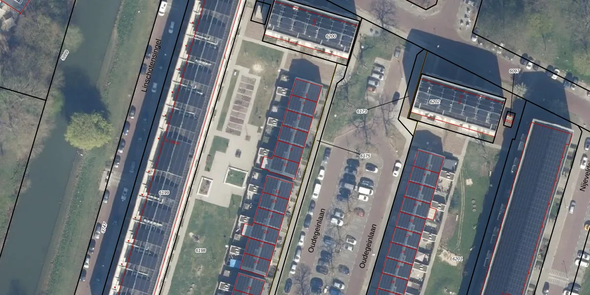 Oudegeinlaan 9 is gelegen op kadastraal perceel UTT00P6198. Deze kadastrale aanduiding is uniek en wordt gebruikt door het Kadaster om eigendomsrechten en andere zakelijke rechten vast te leggen. Het perceel maakt onderdeel uit van de kadastrale gemeente Utrecht.