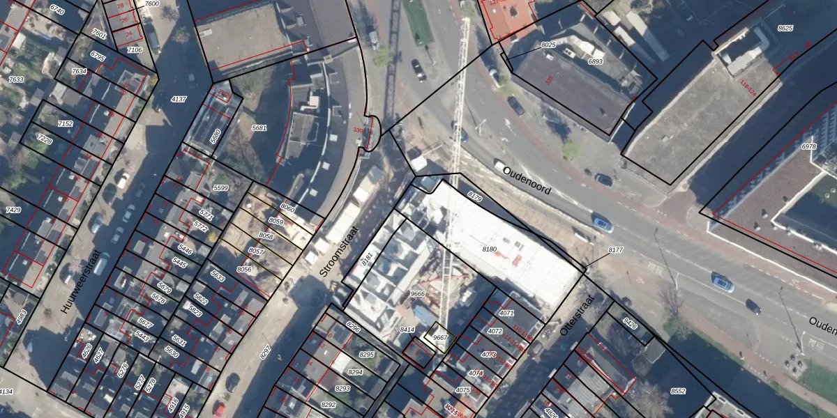 Het perceel waarop Oudenoord 324-E staat heeft een oppervlakte van 632 m². Dit is een groot perceel. De perceeloppervlakte wordt geregistreerd door het Kadaster. Gedetailleerde informatie over de maten van dit perceel kunt u vinden in het rapport Kadastrale kaart met maatvoering van Oudenoord 324-E.
