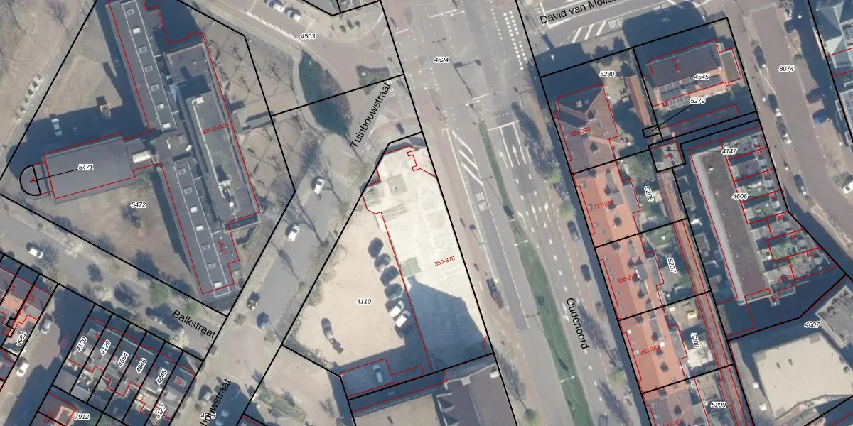 Oudenoord 366 is gelegen op kadastraal perceel LWR01B4110. Deze kadastrale aanduiding is uniek en wordt gebruikt door het Kadaster om eigendomsrechten en andere zakelijke rechten vast te leggen. Het perceel maakt onderdeel uit van de kadastrale gemeente Lauwerecht.