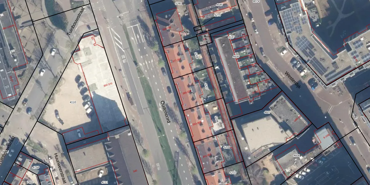 Het perceel waarop Oudenoord 371 staat heeft een oppervlakte van 414 m². Dit is een groot perceel. De perceeloppervlakte wordt geregistreerd door het Kadaster. Gedetailleerde informatie over de maten van dit perceel kunt u vinden in het rapport Kadastrale kaart met maatvoering van Oudenoord 371.