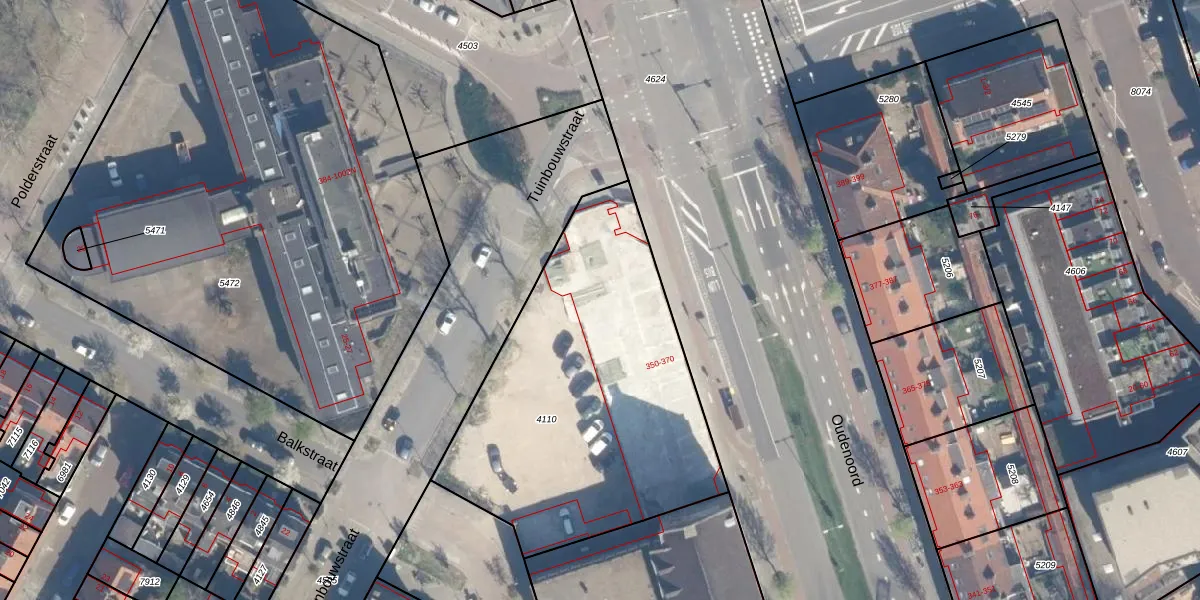 Het perceel waarop Oudenoord 382-A staat heeft een oppervlakte van 1717 m². Dit is een zeer groot perceel. De perceeloppervlakte wordt geregistreerd door het Kadaster. Gedetailleerde informatie over de maten van dit perceel kunt u vinden in het rapport Kadastrale kaart met maatvoering van Oudenoord 382-A.
