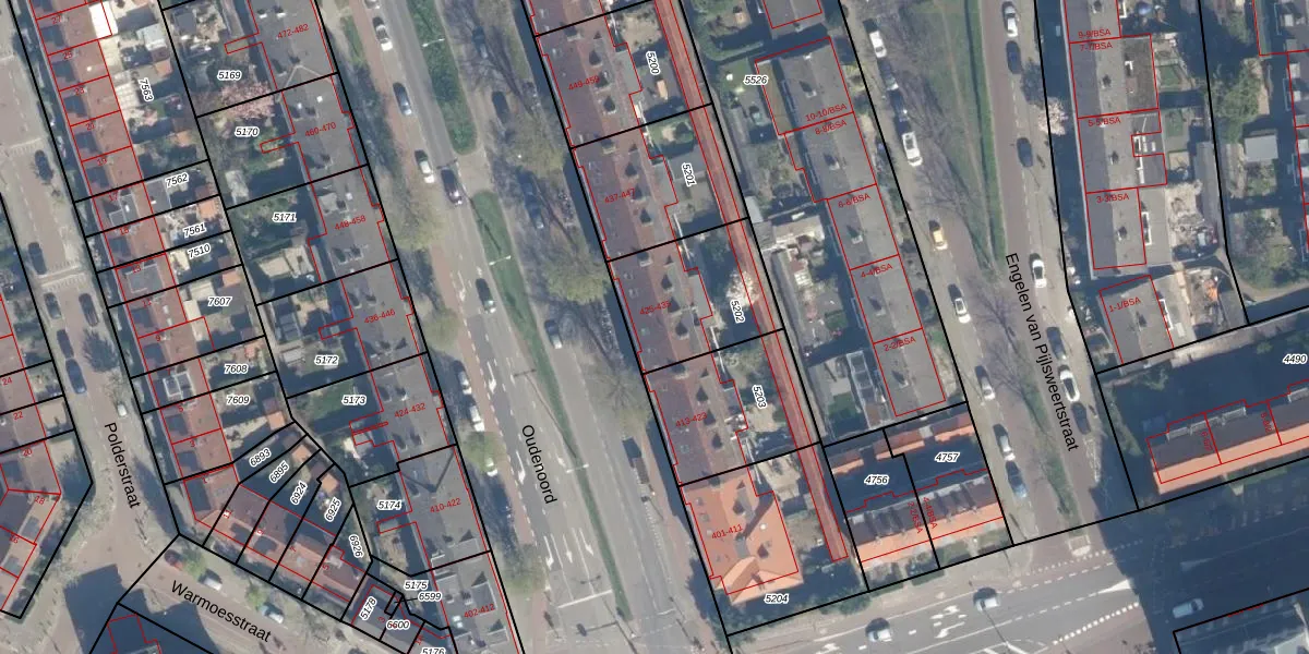 Het perceel waarop Oudenoord 429 staat heeft een oppervlakte van 414 m². Dit is een groot perceel. De perceeloppervlakte wordt geregistreerd door het Kadaster. Gedetailleerde informatie over de maten van dit perceel kunt u vinden in het rapport Kadastrale kaart met maatvoering van Oudenoord 429.
