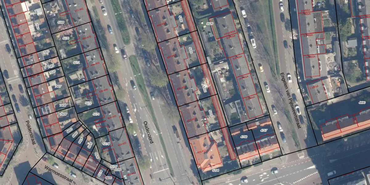 Oudenoord 429-A is gelegen op kadastraal perceel LWR01B5202. Deze kadastrale aanduiding is uniek en wordt gebruikt door het Kadaster om eigendomsrechten en andere zakelijke rechten vast te leggen. Het perceel maakt onderdeel uit van de kadastrale gemeente Lauwerecht.