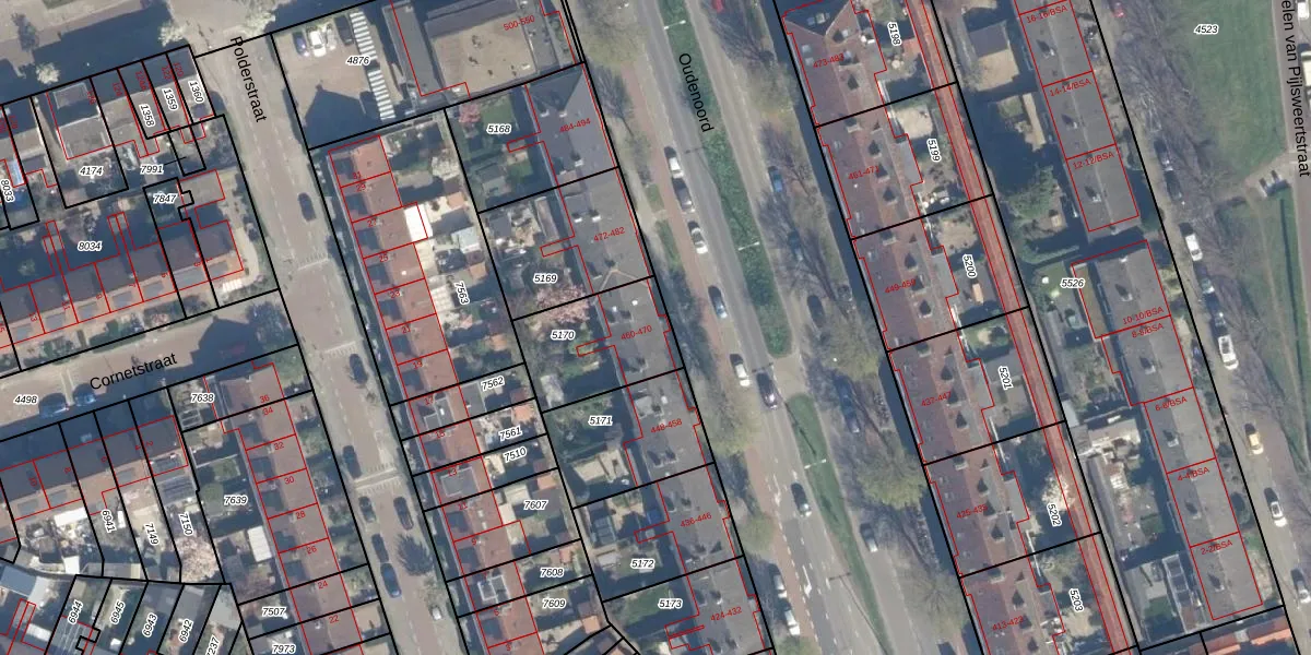 Het perceel waarop Oudenoord 468 staat heeft een oppervlakte van 342 m². Dit is een groot perceel. De perceeloppervlakte wordt geregistreerd door het Kadaster. Gedetailleerde informatie over de maten van dit perceel kunt u vinden in het rapport Kadastrale kaart met maatvoering van Oudenoord 468.
