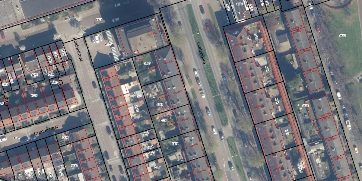Het perceel waarop Oudenoord 480 staat heeft een oppervlakte van 390 m². Dit is een groot perceel. De perceeloppervlakte wordt geregistreerd door het Kadaster. Gedetailleerde informatie over de maten van dit perceel kunt u vinden in het rapport Kadastrale kaart met maatvoering van Oudenoord 480.