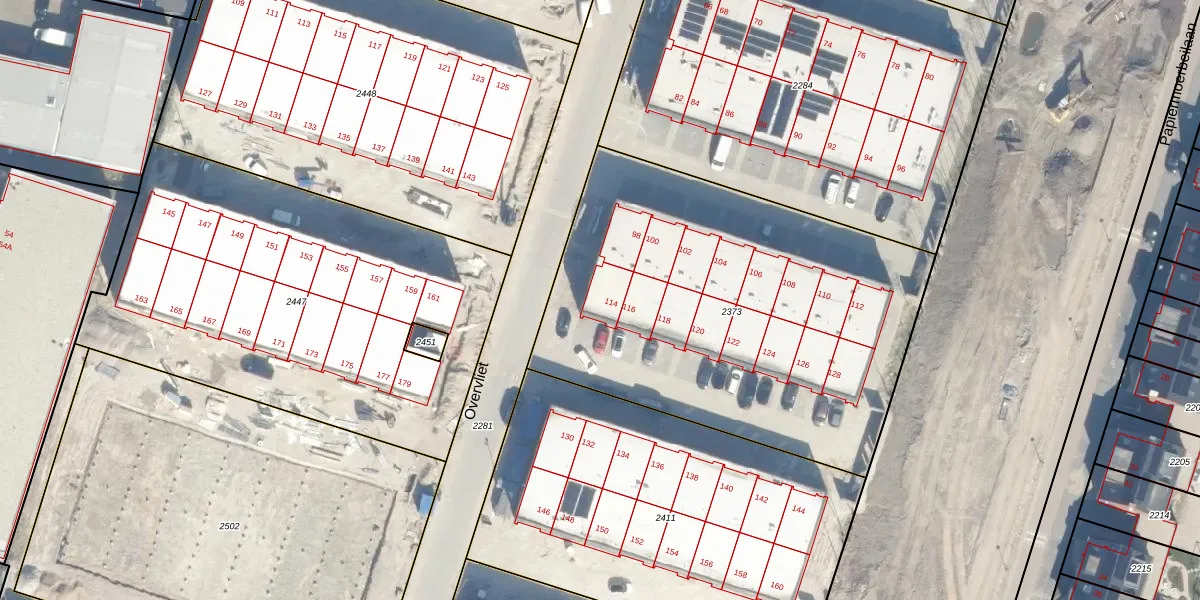 Het perceel waarop Overvliet 114 staat heeft een oppervlakte van 2311 m². Dit is een zeer groot perceel. De perceeloppervlakte wordt geregistreerd door het Kadaster. Gedetailleerde informatie over de maten van dit perceel kunt u vinden in het rapport Kadastrale kaart met maatvoering van Overvliet 114.