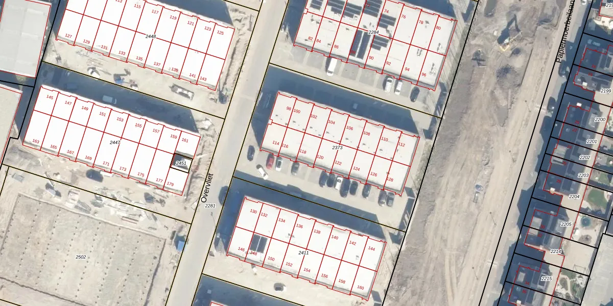 Het perceel waarop Overvliet 118 staat heeft een oppervlakte van 2311 m². Dit is een zeer groot perceel. De perceeloppervlakte wordt geregistreerd door het Kadaster. Gedetailleerde informatie over de maten van dit perceel kunt u vinden in het rapport Kadastrale kaart met maatvoering van Overvliet 118.
