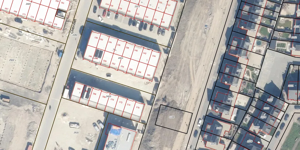Het perceel waarop Overvliet 160 staat heeft een oppervlakte van 1964 m². Dit is een zeer groot perceel. De perceeloppervlakte wordt geregistreerd door het Kadaster. Gedetailleerde informatie over de maten van dit perceel kunt u vinden in het rapport Kadastrale kaart met maatvoering van Overvliet 160.