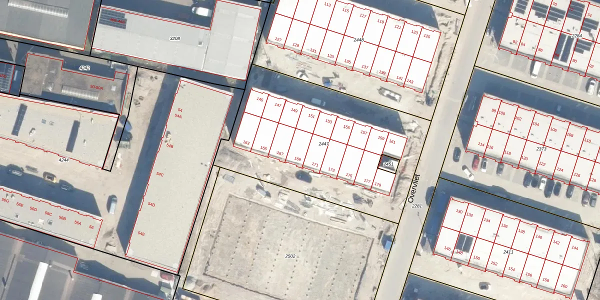 Het perceel waarop Overvliet 169 staat heeft een oppervlakte van 2236 m². Dit is een zeer groot perceel. De perceeloppervlakte wordt geregistreerd door het Kadaster. Gedetailleerde informatie over de maten van dit perceel kunt u vinden in het rapport Kadastrale kaart met maatvoering van Overvliet 169.