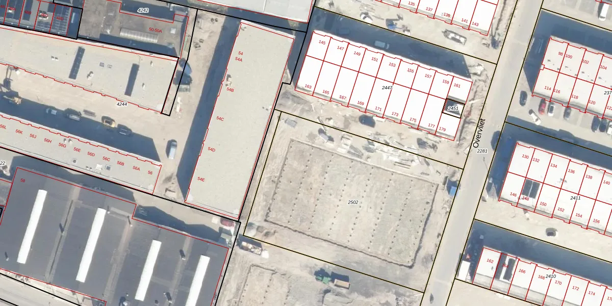 Het perceel waarop Overvliet 181 staat heeft een oppervlakte van 2631 m². Dit is een zeer groot perceel. De perceeloppervlakte wordt geregistreerd door het Kadaster. Gedetailleerde informatie over de maten van dit perceel kunt u vinden in het rapport Kadastrale kaart met maatvoering van Overvliet 181.
