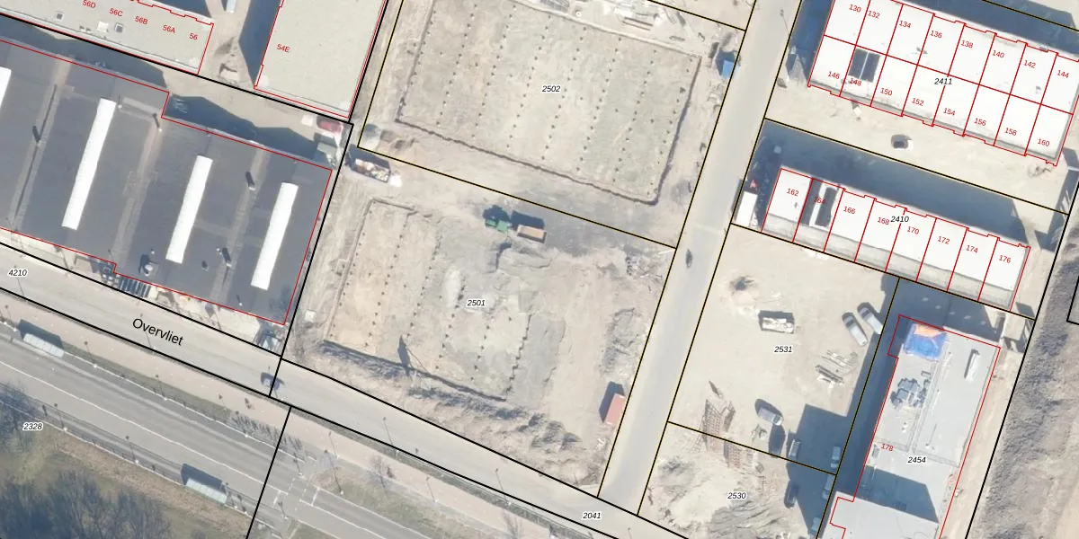 Het perceel waarop Overvliet 217 staat heeft een oppervlakte van 2972 m². Dit is een zeer groot perceel. De perceeloppervlakte wordt geregistreerd door het Kadaster. Gedetailleerde informatie over de maten van dit perceel kunt u vinden in het rapport Kadastrale kaart met maatvoering van Overvliet 217.