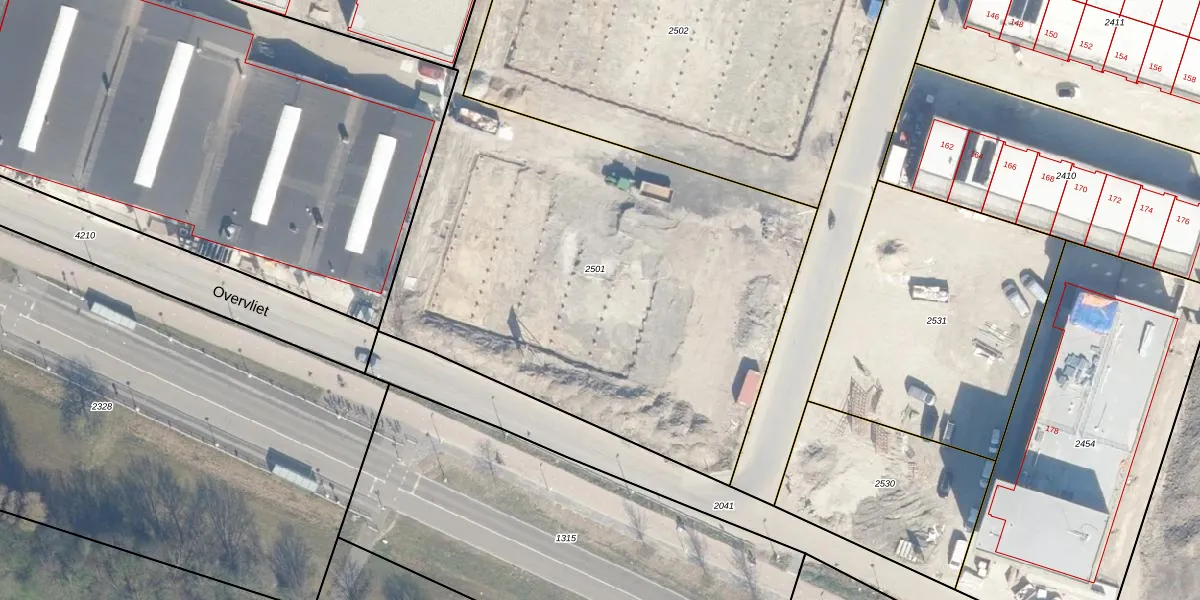 Het perceel waarop Overvliet 229 staat heeft een oppervlakte van 2972 m². Dit is een zeer groot perceel. De perceeloppervlakte wordt geregistreerd door het Kadaster. Gedetailleerde informatie over de maten van dit perceel kunt u vinden in het rapport Kadastrale kaart met maatvoering van Overvliet 229.