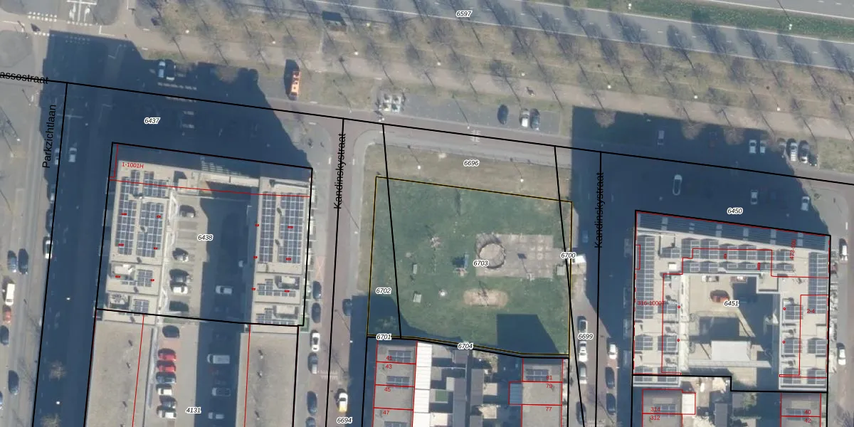 Het perceel waarop het adres ligt is UTT00-V-6703. De afkorting 'UTT00' staat voor kadastrale gemeente Utrecht. De oppervlakte van het perceel is 1486 m². Dat is groter dan gemiddeld in Utrecht, waar de gemiddelde perceeloppervlakte op 1438,48 m² ligt. Het kleinste perceel in de kadastrale gemeente is 0 m² groot. De grootste perceeloppervlakte is 90,1 ha. Er zijn 64 adressen aanwezig op het perceel. De huidige grenzen van het perceel zijn digitaal in de Basisregistratie Kadaster (BRK) geregistreerd op 09-12-2025.