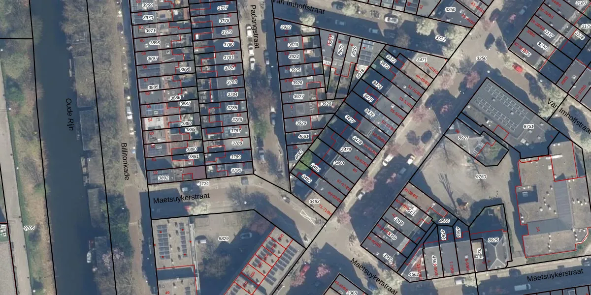Het perceel waarop Padangstraat 1-A staat heeft een oppervlakte van 43 m². Dit is een klein perceel. De perceeloppervlakte wordt geregistreerd door het Kadaster. Gedetailleerde informatie over de maten van dit perceel kunt u vinden in het rapport Kadastrale kaart met maatvoering van Padangstraat 1-A.