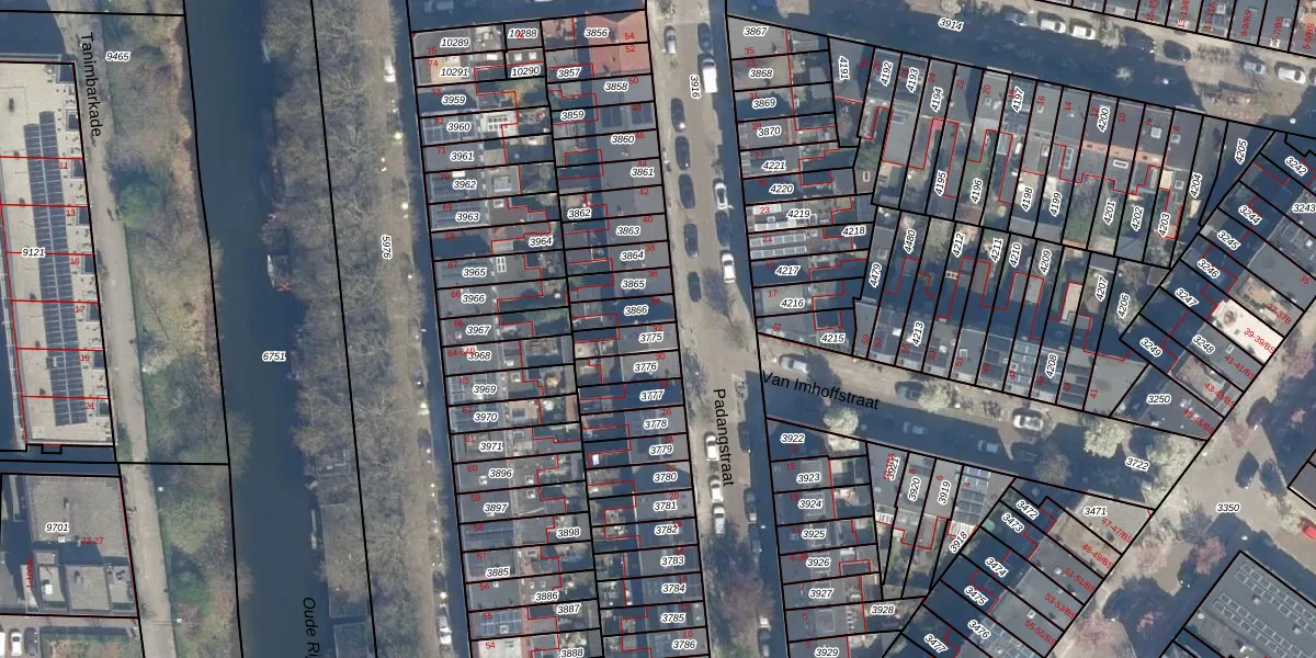 Het perceel waarop Padangstraat 32 staat heeft een oppervlakte van 68 m². Dit is een klein perceel. De perceeloppervlakte wordt geregistreerd door het Kadaster. Gedetailleerde informatie over de maten van dit perceel kunt u vinden in het rapport Kadastrale kaart met maatvoering van Padangstraat 32.
