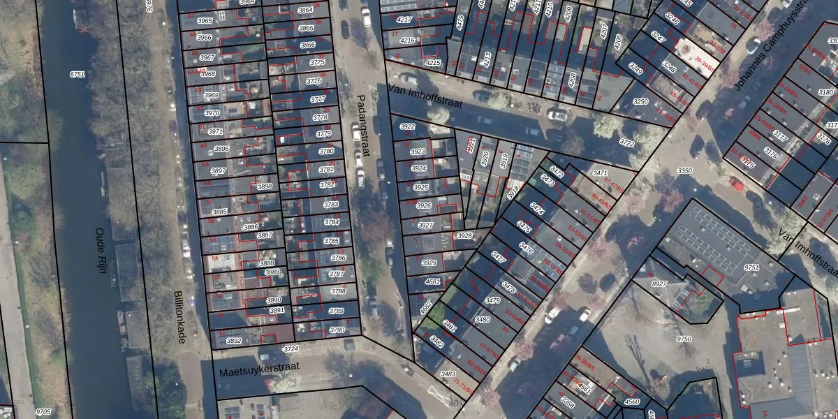 Het perceel waarop Padangstraat 9-A staat heeft een oppervlakte van 63 m². Dit is een klein perceel. De perceeloppervlakte wordt geregistreerd door het Kadaster. Gedetailleerde informatie over de maten van dit perceel kunt u vinden in het rapport Kadastrale kaart met maatvoering van Padangstraat 9-A.